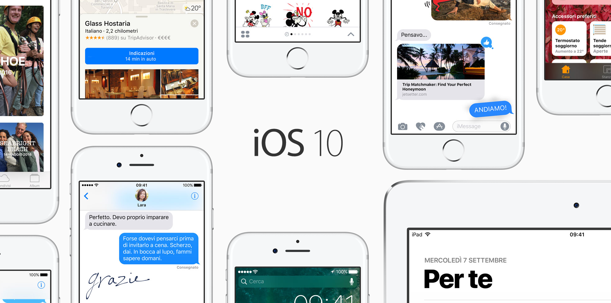 Apple ha dato il via al rilascio ufficiale di iOS 10, la nuova versione del sistema operativo dedicata ad iPhone, iPad e iPod annunciata durante lo scorso WWDC 2016. Le novità sono diverse e non riguardano solamente i nuovi iPhone 7 e iPhone 7 Plus: scopriamo insieme le dieci più importanti.